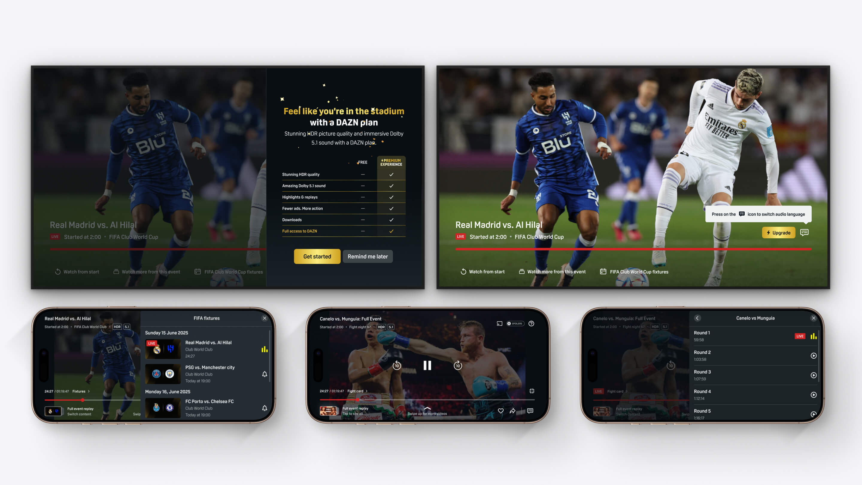 DAZN brings sports to life on screen and beyond We partnered to shape a product experience that feels just as dynamic as the game itself From first tap to final whistle everything was designed to move fast feel smooth and keep fans fully engaged