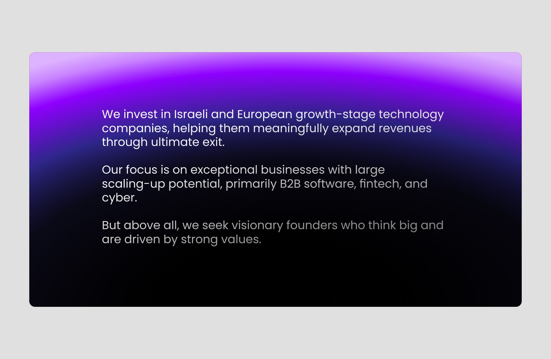 Key1 is a global investment firm focused on Israeli growth-stage tech companies. When we joined the project, our goal was to create a brand that feels sharp and full of forward momentum. We started with the logo — the number “1” shaped as a doorway, a quiet metaphor for opportunity and new beginnings. That idea became the foundation for a clean and confident visual identity.